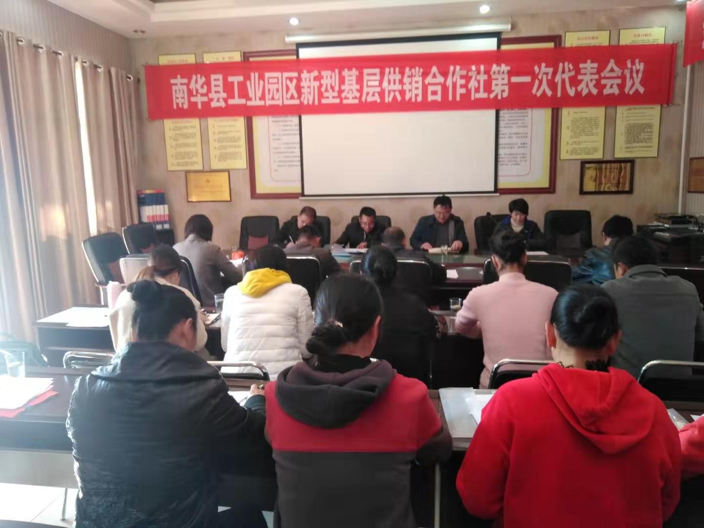 2019年11月22日上午,南华县工业园区新型基层供销合作社第一次代表会议在县城老高坝工业园区召开,会议通过了《南华县工业园区新型基层供销合作社第一届社员代表大会关于工作报告的决议》,选举产生了理事会、监事会领导班子,余跃先和苏文海同志分别当选为理事会和监事会主任,会议以举手表决的方式通过《南华县工业园区新型基层供销合作社章程》,会议要求要以习近平新时代中国特色社会主义思想为指导,认真贯彻落实党中央、国务院和省、州、县党委政府的决策部署,大力推进综合改革,围绕推进乡村振兴战略,不断增强工业园区新型基层供销合作社经济实力和为农服务能力,全面提升供销合作事业的服务水平。