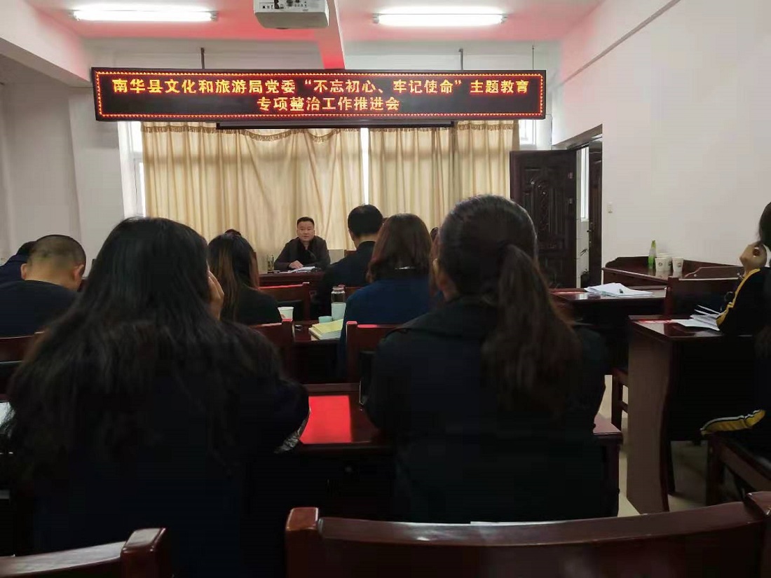 南华县文化和旅游局在开展“不忘初心、牢记使命”主题教育中,坚持边学边改,以学促改,扎实治理行业内存在的突出问题,有力推进全县文化和旅游市场安全平稳有序运行。