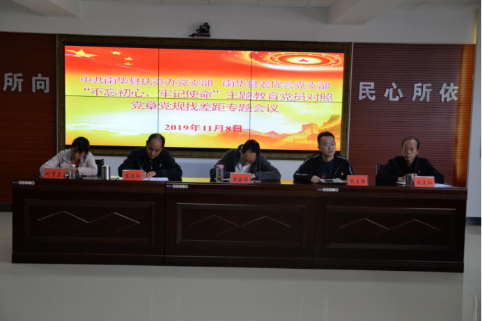 对照党章党规找差距,进行自我检视,是开展“不忘初心、牢记使命”主题教育的一项主要内容,是推动广大党员主动检视自我、自觉修正错误的重要措施。南华县扶贫办党支部在办党组的领导下,根据县委的统一部署和县委第九巡回指导组的要求,于2019年11月8日下午协同与县老促会党支部一起召开了“不忘初心、牢记使命”主题教育党员对照党章党规找差距专题会议,“两个支部”在单位的党员及抽调到县扶贫办工作的党员同志及党员发展对象、入党积极分子共18人参加了会议。