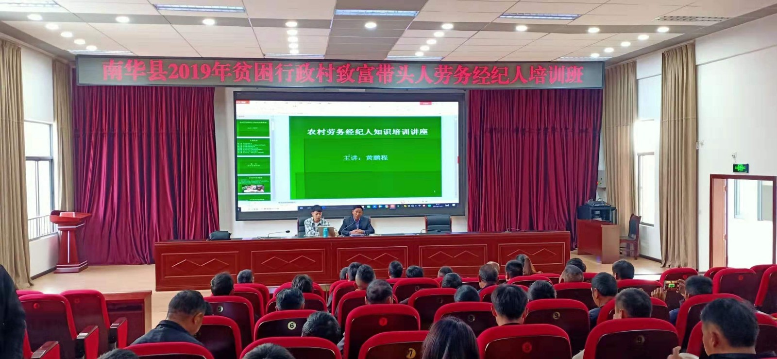本次培训,旨在通过提高全县脱贫创业致富带头人的创业和发展能力,挖掘培育贫困户脱贫致富的内生动力,加快贫困村整体脱贫步伐,为巩固脱贫成效提供“智力”支持。培训班上,培训机构云南劳服实业有限公司进行了劳务经纪人专业授课,致富带头人朱照福作了典型交流发言,县人社局工作人员进行了就业扶贫政策讲解,县委党校老师结合“不忘初心、牢记使命”主题教育、通过致富带头带动贫困劳动力携手奔小康相关知识进行授课。