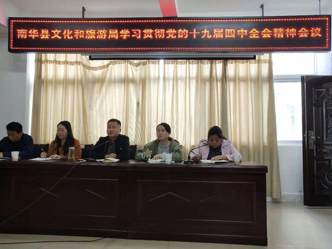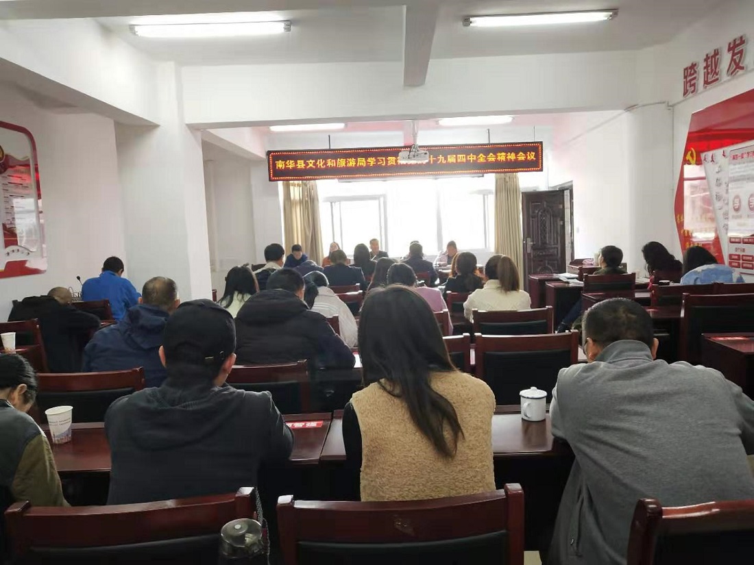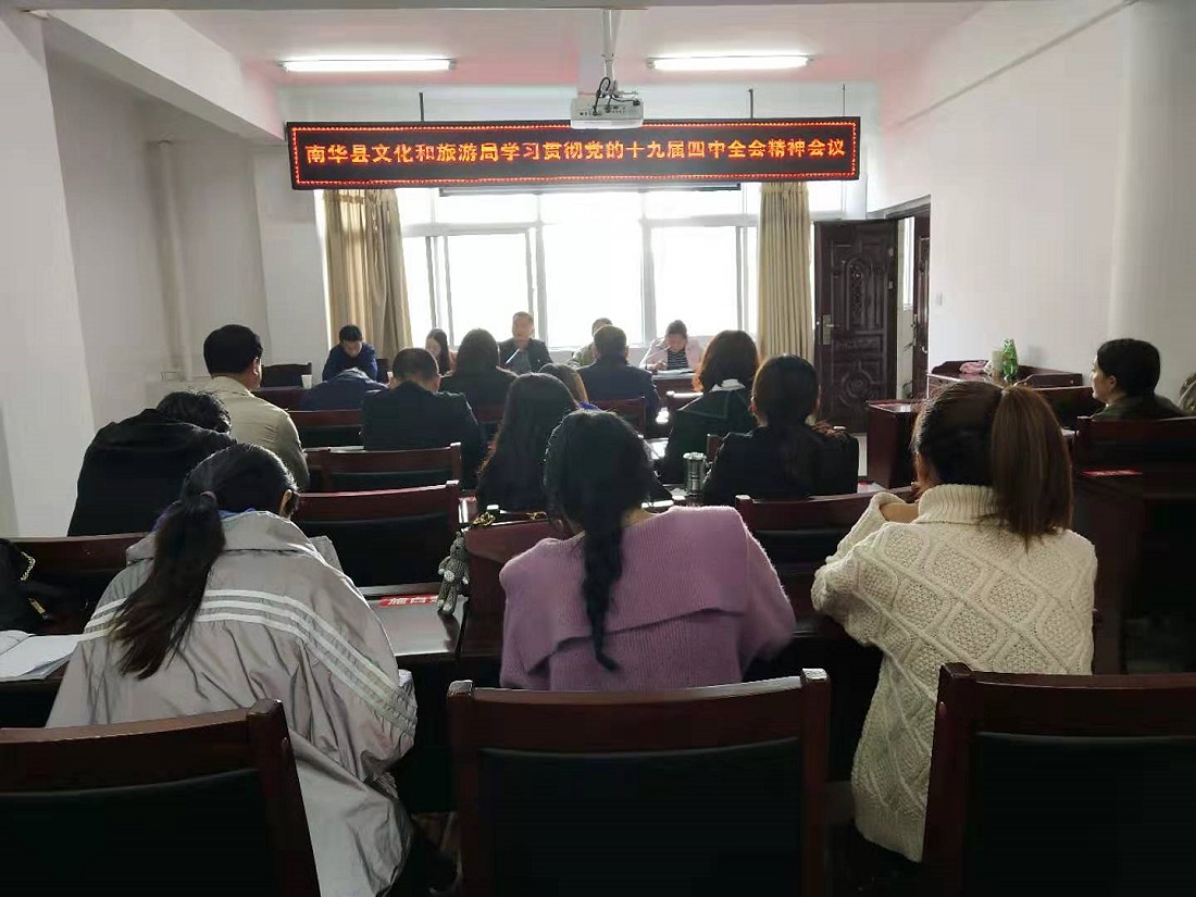 11月4日,南华县文化和旅游局召开全体干部职工会议,认真传达学习了党的十九届四中全会精神。
