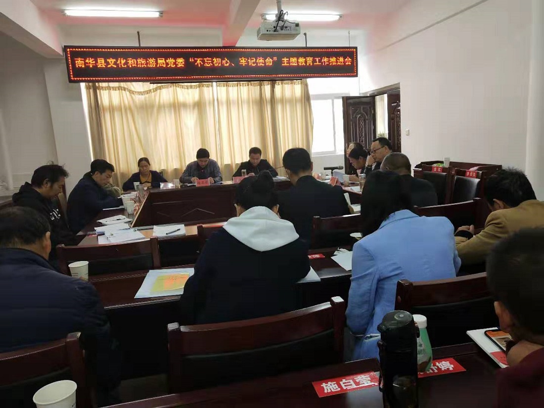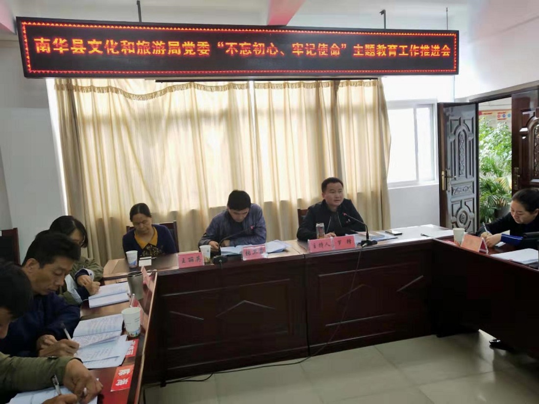 10月30日,南华县文化和旅游局党委召开“不忘初心、牢记使命”主题教育工作推进会。