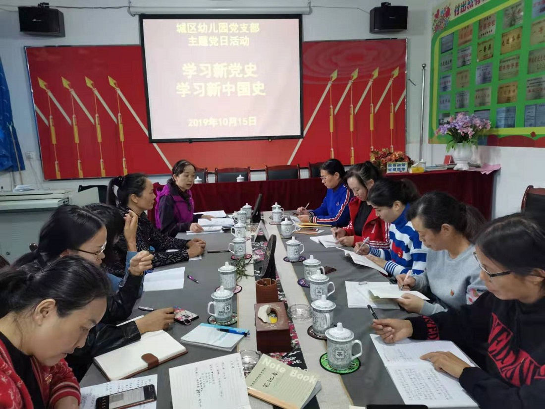 10月24日下午,南华县城区幼儿园以“党史、新中国史”为学习专题,开展了“不忘初心、牢记使命”主题教育集中学习活动。学习会议由园党支部书记邓华芬主持,全体教师参加。