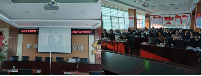 读书班邀请南华县委党校高级讲师夏银香作主题为“不忘初心跟党走,牢记使命勇担当”的专题辅导。夏银香同志从中国共产党人的初心和使命是什么、为什么要“不忘初心、牢记使命”、守初心担使命,做新时代敢担当有作为的党员干部三方面生动讲说,让党员同志真正做到学懂、弄通、做实,把理论学习和岗位职责相结合,充分发挥党员先锋模范作用,以实际行动践行共产党人的初心和使命。