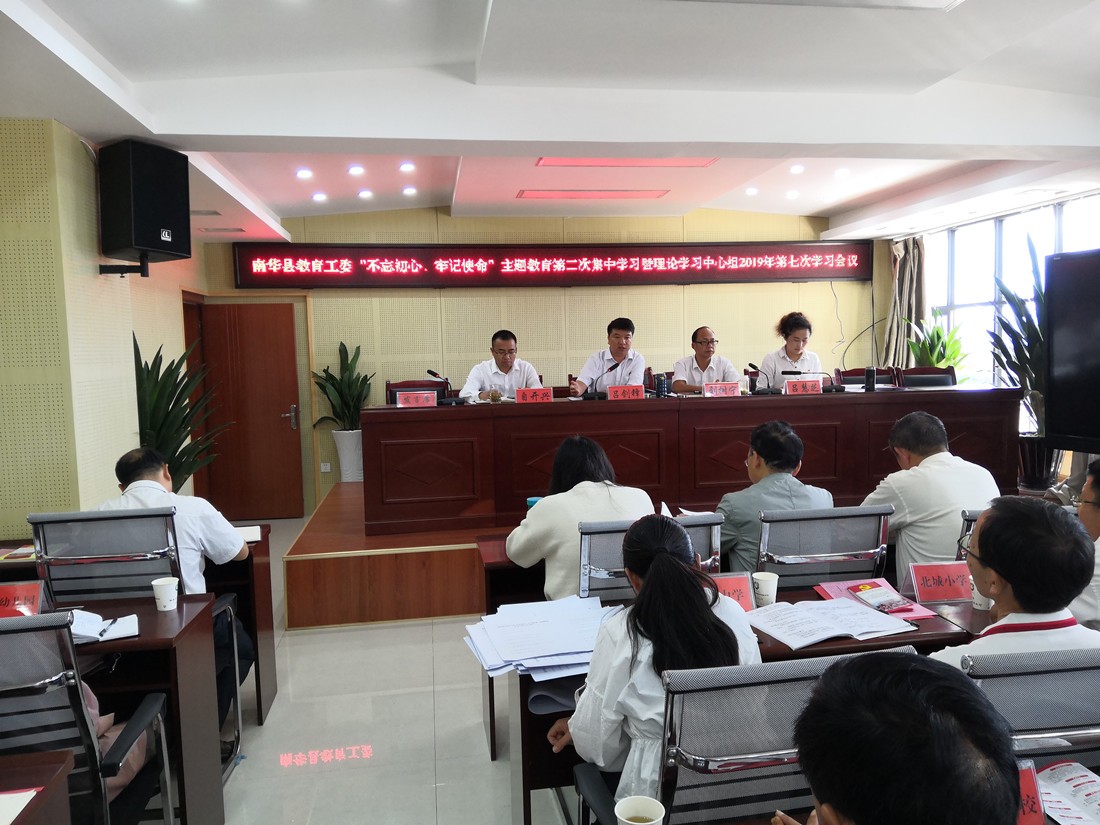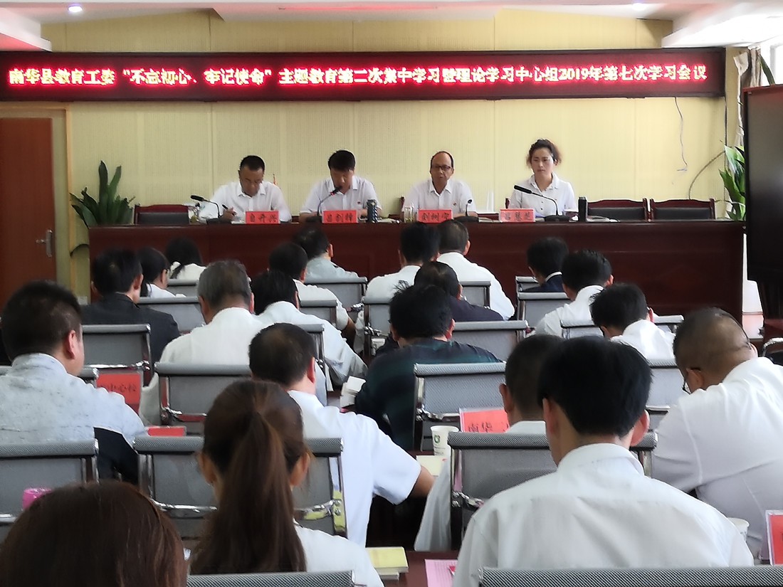 按照“不忘初心、牢记使命”主题教育工作计划,10月18日下午,南华县教育工委班子开展“不忘初心、牢记使命”主题教育第二次集中学习暨理论学习中心组2019年第七次集中学习。县委第九巡回指导组领导开展谈话;县教育工委、县教育体育局党政班子成员,局机关党员干部职工;各党总支(支部)书记、校(园)长共计80余人参加学习。会议由县教育工委书记吕剑锋同志主持。