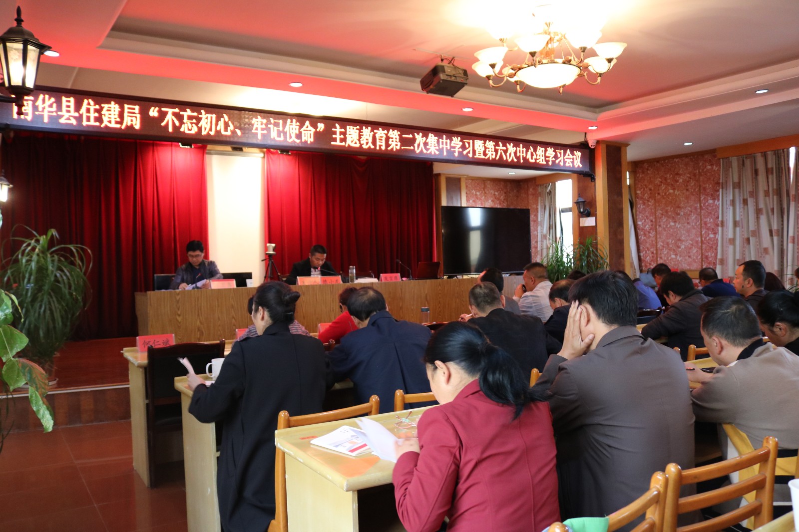 1.进一步推进“学习教育”工作。10月14日至15日,南华县住建局开展了为期2天的“不忘初心、牢记使命”主题教育集中学习暨理论学习中心组。10月14日上午组织全体党员干部集中学习,学习近期“不忘初心、牢记使命”主题教育重要会议精神及文件精神,学习习近平总书记在庆祝中华人民共和国成立70周年大会上的重要讲话及其他重要讲话精神,认真学习党史、新中国史,印发学习材料,并在4楼党员活动室设立“主题教育学习书架”供党员干部自学使用。10月15日下午组织中心组学习,班子成员、下属党支部班子、机关全体党员、各股室(厂、站、队、中心)负责人参加会议。会上,党委书记、局长陈小龙同志作学习动员,提出学习要求;县委第十巡回指导组组长张卫鑫同志作了业务指导;开展视频教学,组织观看百家讲坛《党史故事100讲》部分课程;党委委员鲁忠先、王朝生同志分别结合本次学习主题和党员领导干部职责作了中心发言;党员罗世海、张龙英同志结合学习主题联系思想和工作实际,谈了认识和体会;会议还邀请了县委党校第一宣讲组对习近平新时代中国特色社会主义思想进行专题辅导。最后,会议强调,全体党员干部要在学习中共党史、新中国史和先进典型中激发爱国之情、砥砺强国之志,把爱国热情转化为推动南华住房和城乡建设事业高质量跨越式发展的实际行动。