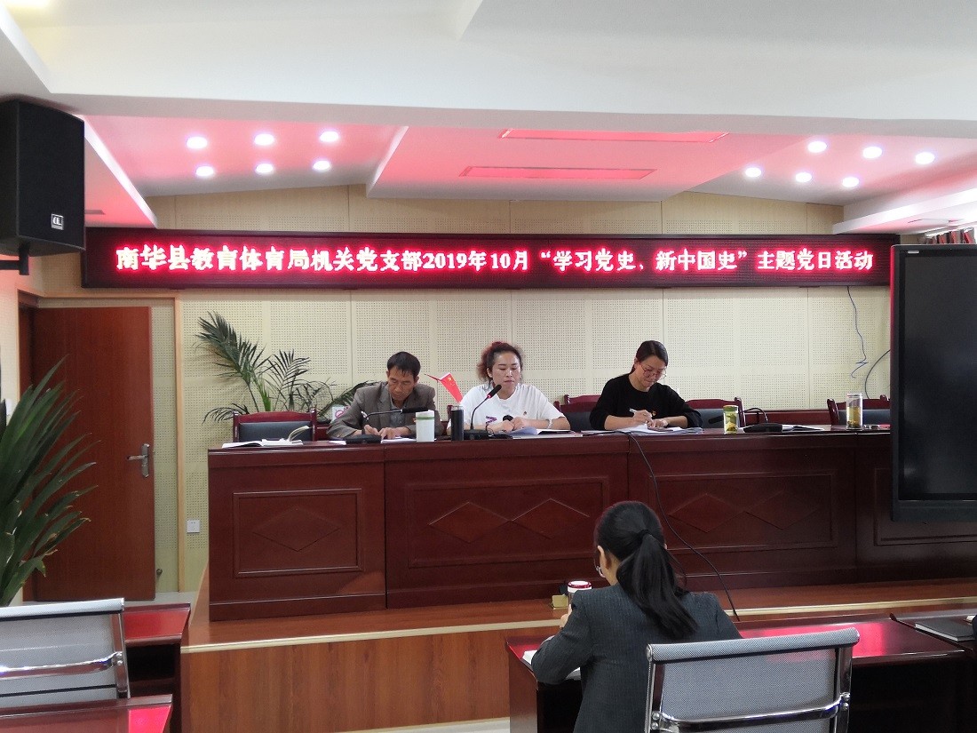 2019年10月14日,南华县教育体育局机关党支部开展“学习党史、新中国史”主题党日“八个一”活动: