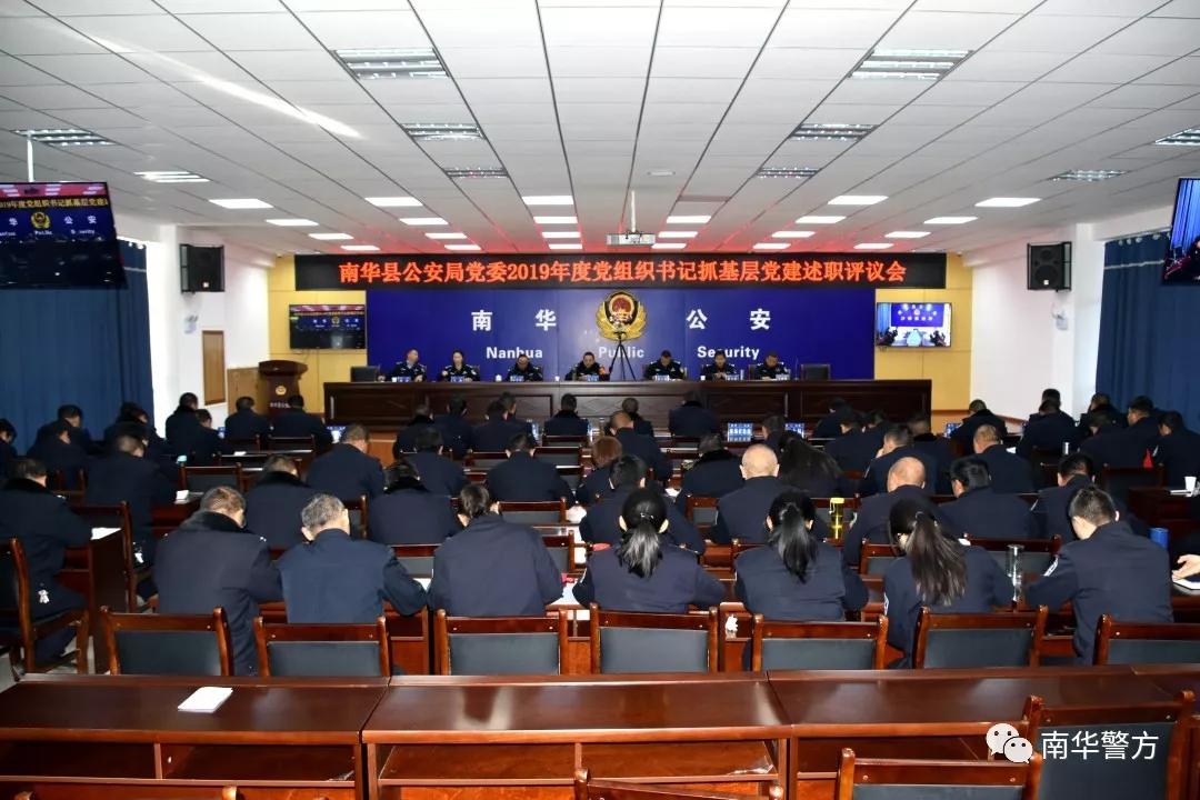 1月20日,南华县公安局党委召开2019年度党组织书记抓基层党建述职评议考核会议。县公安局党委班子成员,龙川派出所、局机关各部门实职副科以上领导,各党支部书记、组织委员等共50余人参加会议。
