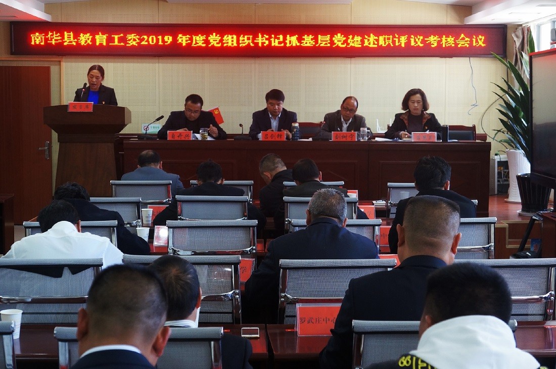 1月16日,南华县教育工委召开2019年度党组织书记抓基层党建述职评议考核会议。县教育工委、县教育体育局党政班子成员,“两代表一委员”和各学校党组织书记等50余人参加会议。