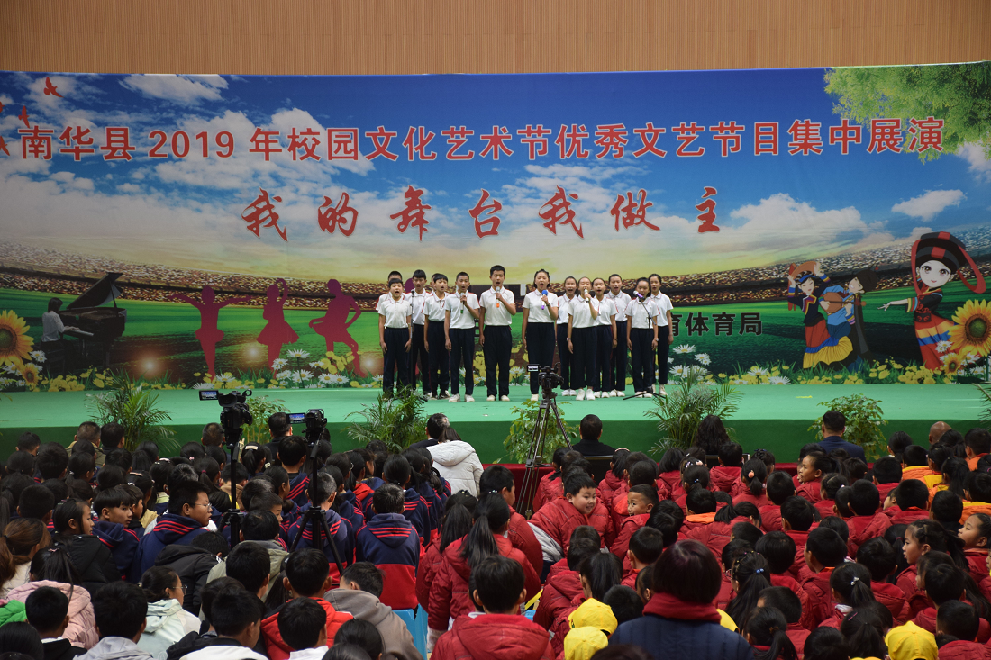 据悉,本次优秀文艺节目集中展演仅为南华县2019年校园文化艺术节的一部分。一场师生书法、绘画、摄影、手工作品展,一次征文创作评选活动,一次经典诵读、讲故事、好书分享活动,一次师德师风故事和先进典型事迹征集评选的活动正在各中小学同步开展中。此次校园文化艺术节从12月开始,到2020年1月底全部完成,历时两个月。旨在通过“五个一”活动为全县师生展示自我搭建舞台,展示各学校素质教育成果,努力办好人民满意的教育。(南华县教育体育局 吕增海 者小傑 )