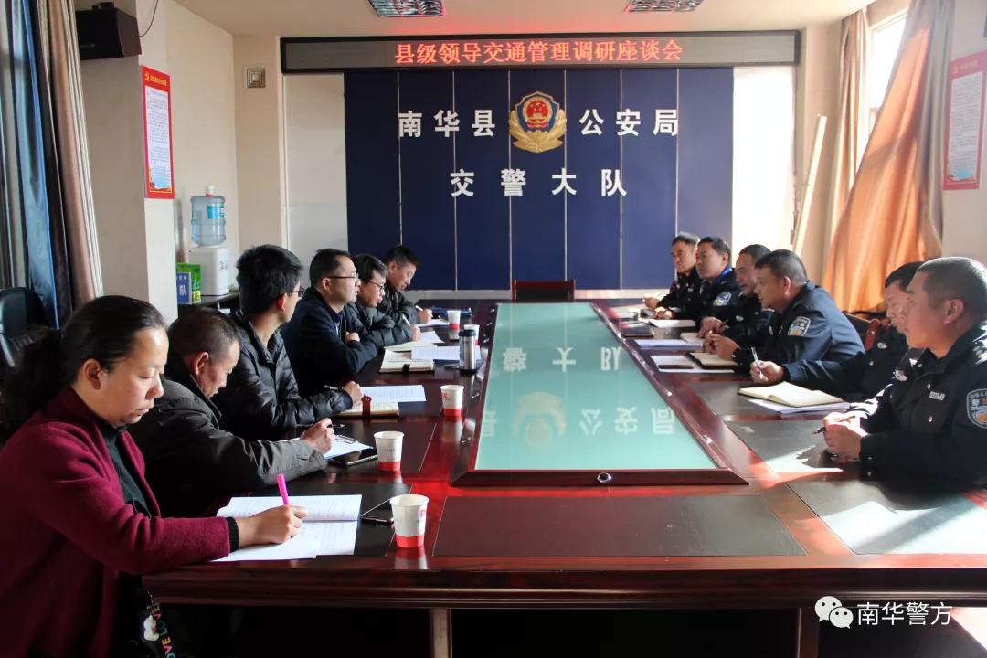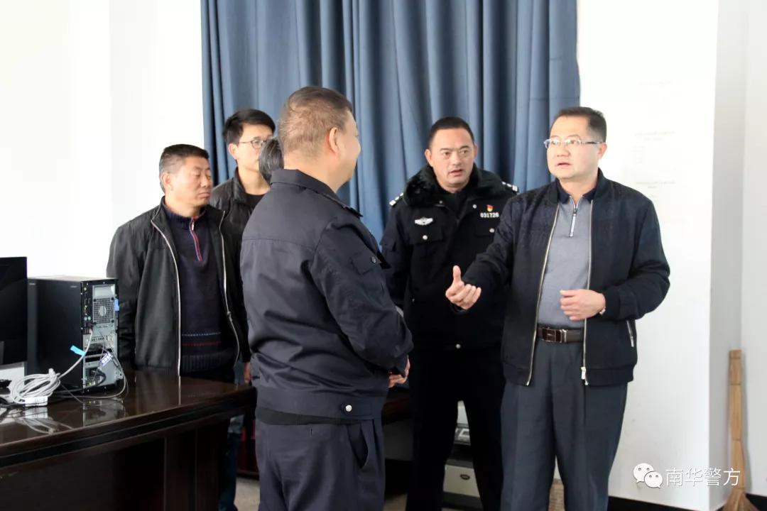 12月18日,南华县委常委、县人民政府常务副县长石文武同志深入县公安局交警大队调研指导工作,看望慰问民警、辅警,宣讲党的十九届四中全会精神,检查指导公安交通管理工作,实地查看交警大队指挥中心运行情况,详细了解交通事故预防、交通秩序管控、接处警等工作,与民警亲切座谈,对做好新的一年各项工作提出要求。