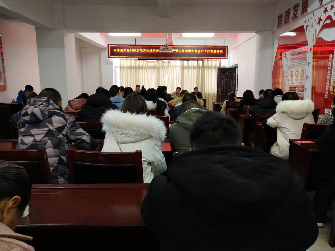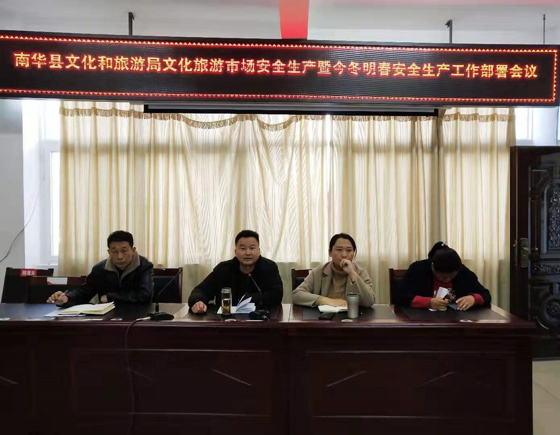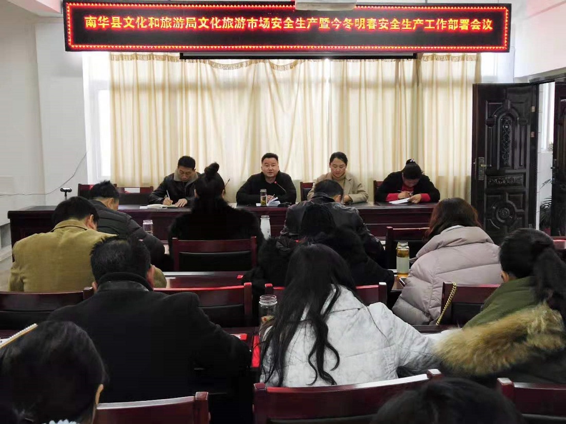 12月13日,南华县文化和旅游局召开会议,就今冬明春全县旅游文化市场安全生产工作作了部署和安排。局领导班子成员、局机关各股室(馆站所)全体干部职工,星级宾馆(酒店)、旅行社、特色餐饮名店业主,部分文化企业负责人参加会议。