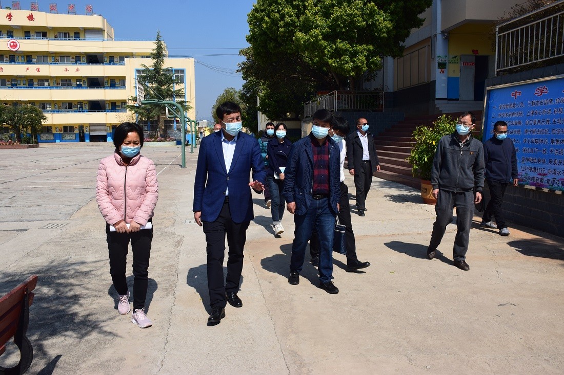 3月25日,县长、县应对疫情工作领导小组组长何文明,副县长、县应对疫情工作领导小组常务副组长陈贵富带领县教体局、县卫健局主要领导,深入南华一中等学校调研检查高三、初三学生返校复学工作开展情况,实地查看学校食堂、学生宿舍、教室、临时观察室等疫情防控重点场所,详细听取学校负责人就复学准备、防疫措施、物资储备等方面的汇报。