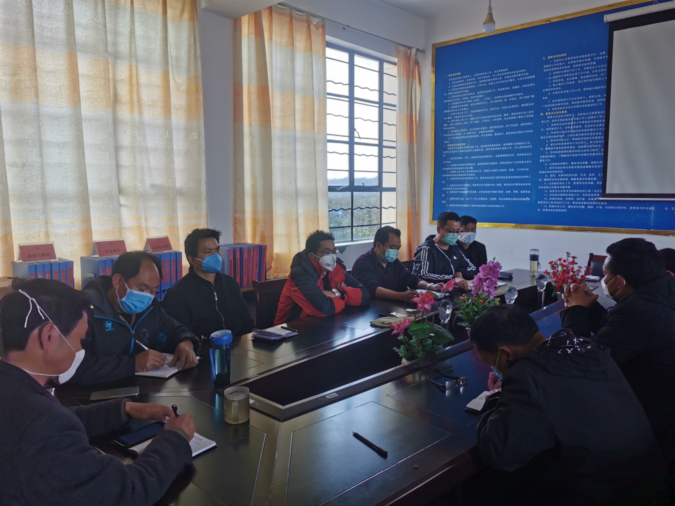 会议结束后,寇校长要求值班领导对校园进行了一次区域全覆盖的消杀,保证校园干净无毒。另外还组织学校班子成员、班主任、安保和后勤工作人员参加了南华县教育体育局组织召开的“2020年春季学期学校疫情防控知识和学生资助工作业务视频培训会”。(周建林 )