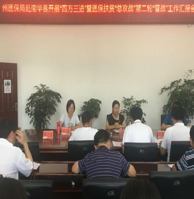 6月17日,楚雄州医疗保障局党组书记、局长祝春燕一行深入南华县医疗保障局、部分乡镇卫生院、村卫生室调研建档立卡贫困人口参保缴费情况、建档立卡贫困人口28种特慢病门诊待遇享受情况,国家集中采购药品采购、使用、配送情况,听取南华县医疗保障局开展决战决胜脱贫攻坚医保扶贫“总攻战”工作情况汇报。县人民政府副县长陈贵富、县医疗保障局主要领导和相关人员陪同调研。