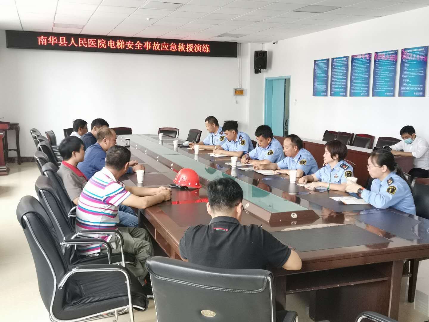 演练假定在南华县人民医院住院部医用电梯发生了困人事故,被困人员使用轿厢内的紧急报警装置、报警号码向外求救,使用单位值班人员接到求救电话后,立即启动紧急救援程序实施救援,安全地解救出被困人员,及时排除了电梯故障,使电梯恢复正常运行的全过程。整个过程历时20分钟,程序规范、措施得当,演练取得圆满成功。