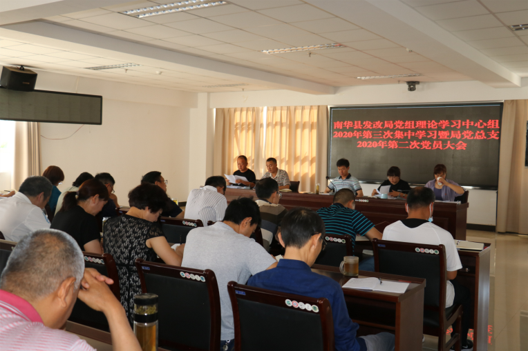 6月8日上午,南华县发改局召开2020年党组理论学习中心组第三次集中学习暨局党总支第二次党员大会,落实全面从严治党、“以案促改”“十个一”警示教育工作。全体班子成员、机关全体干部职工、县粮食储备有限公司党支部在职党员、部分离退休党支部党员参加了会议,会议由局党组书记、局长陈朝刚同志主持。