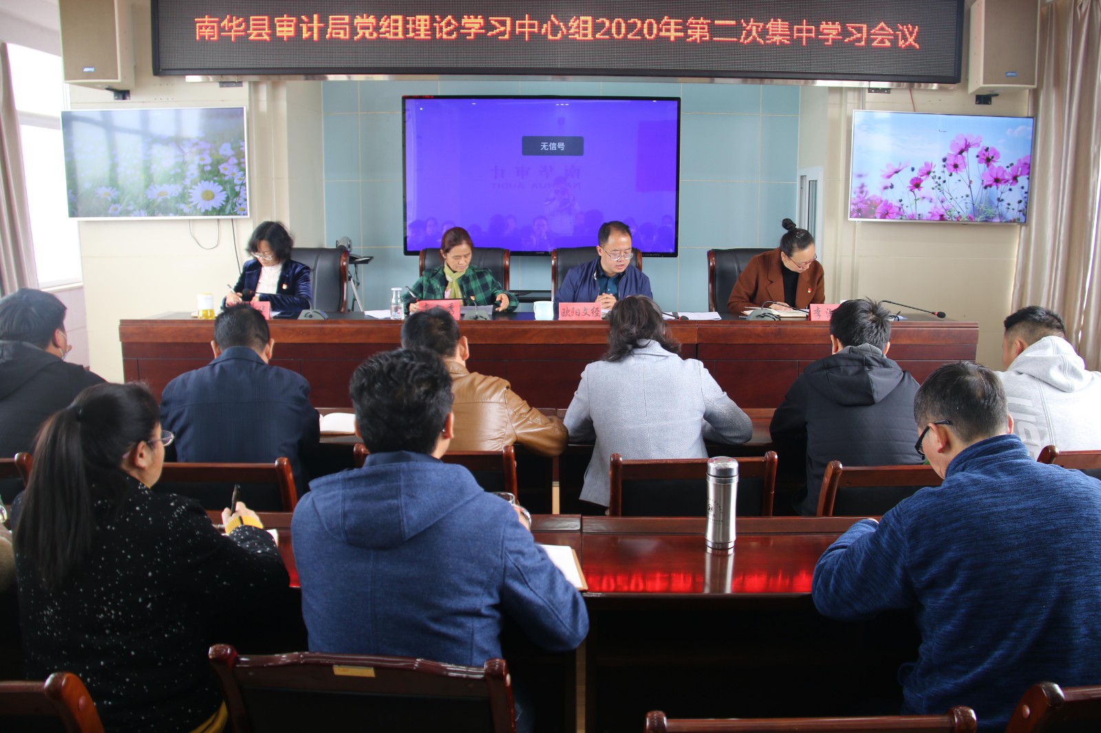 4月27日,南华县审计局党组举行理论学习中心组2020年第二次集中学习,会议由党组书记、局长欧阳文经主持,县纪委监委派驻县财政局纪检监察组李文秀同志到会指导。