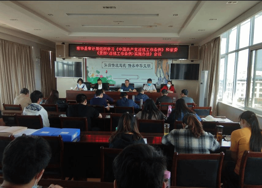 近日,南华县审计局召开党组会议、职工会议,对《中国共产党巡视工作条例》和省委《贯彻〈中国共产党巡视工作条例〉实施办法》原文进行了传达学习,并要求全体各干部职工,一要以学习贯彻《中国共产党巡视工作条例》为契机,深化作风建设,严守政治、廉洁、组织和工作纪律,严格上下班作息时间,坚守工作岗位,自觉践行“三严三实”,努力营造风清气正审计队伍。二要以学习贯彻《中国共产党巡视工作条例》为契机,结合县委对我局开展的巡察工作进行集中自查自检。把巡察工作作为自我提升的一次机会,巡察过程中要做到边巡边改、自觉纠正,推进工作落实。