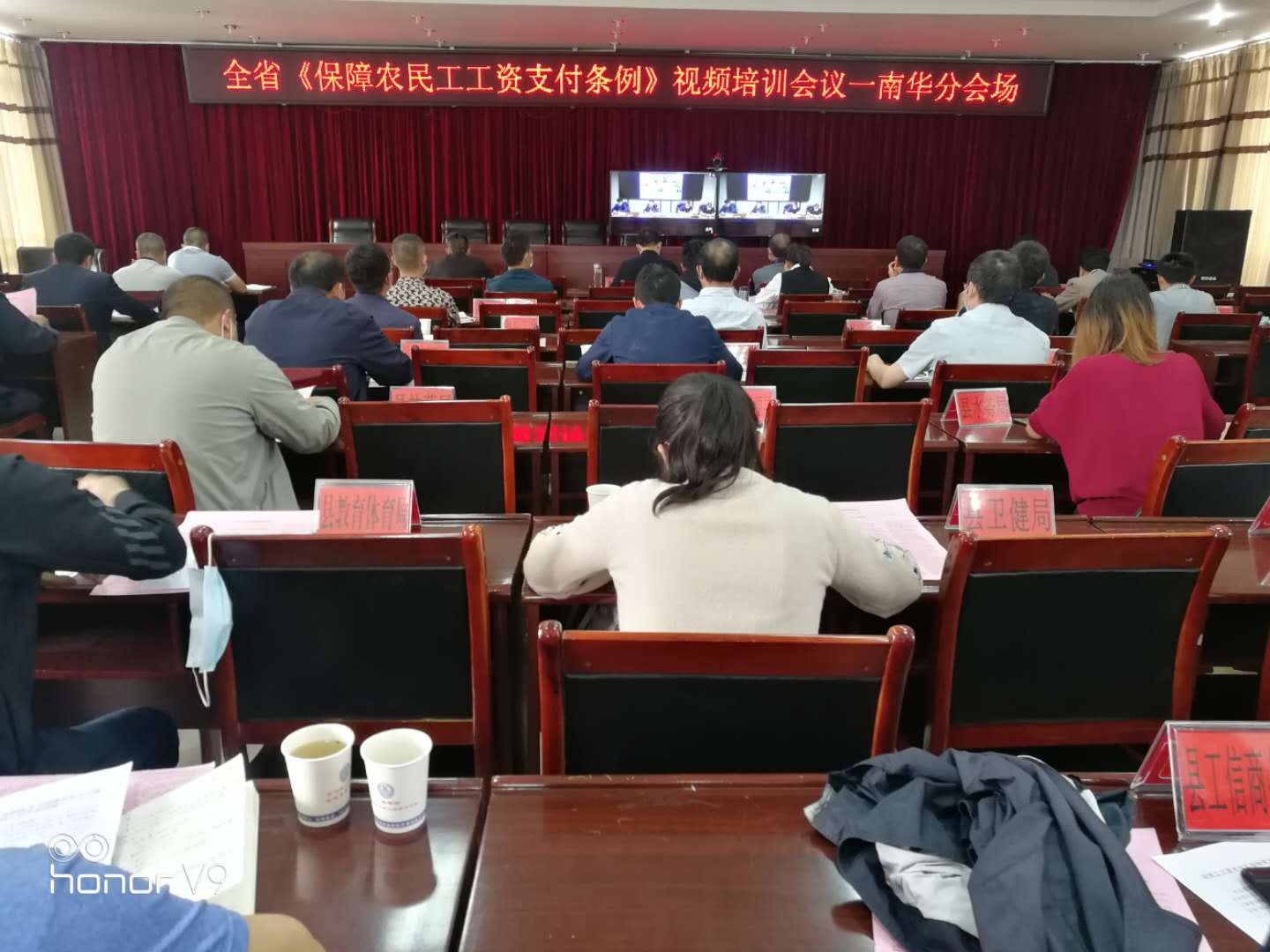 为全力营造《保障农民工工资支付条例》实施的良好氛围,确保《保障农民工工资支付条例》宣传到单位、到企业、到厂矿、到社区。4月23日下午,南华县人社局牵头,组织全县27家根治拖欠农民工工资工作领导小组成员单位分管领导、15家县属部分重点企业负责人及县人社局部分干部职工共计56人在县人社局参加全省《保障农民工工资支付条例》视频培训会。