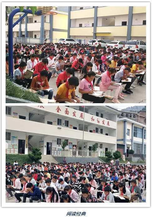 2018年8月31日,经过反复酝酿与讨论的《南华县一街中心学校“经典与同行 阅读伴成长”读书活动实施方案》正式实施。方案要求各班语文教师每天中午用30分钟时间,组织学生以《经典诵读——中华优秀传统文化读本》为载体、通过一体机利用网络资源中有声读物进行国学经典视听诵读;每天下午6:00—7:00,组织学生阅读课外必读名著,其中前10分钟背诵国学经典内容和课外阅读笔记,中间40分钟集中阅读必读名著,后10分钟以小组为单位进行交流或撰写阅读见解;以读书笔记、手抄报、读书交流、阅读日记、读书征文活动、故事会、古诗文朗诵比赛等形式进行阅读巩固和迁移;每周五以各校点为单位,对本周国学经典视听诵读和名著阅读活动进行交流、总结和评价,对表现较好的学生给予表彰奖励。