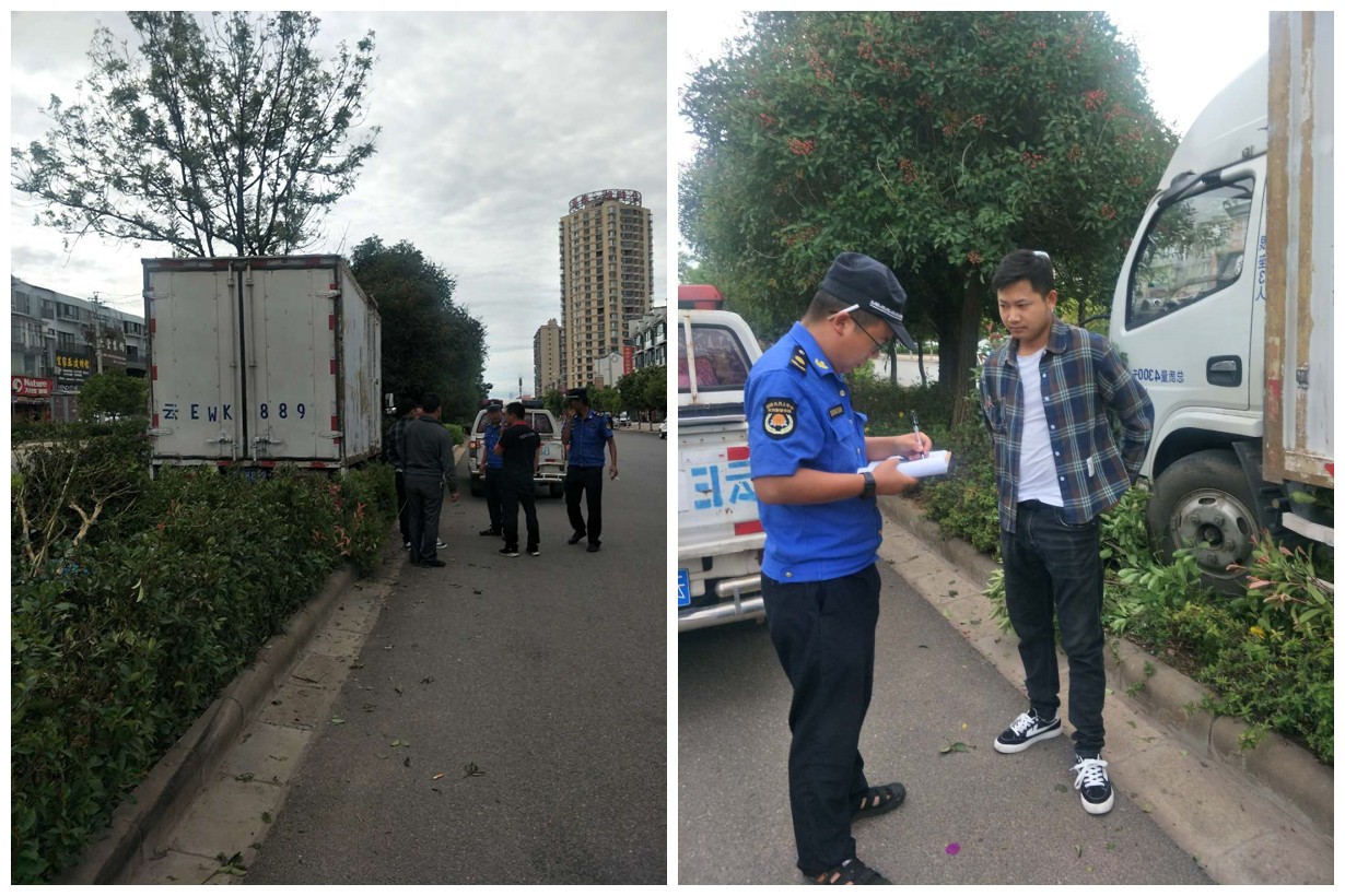 云EWK889车辆损坏中央绿化带,责令修复绿化带并处300元罚款