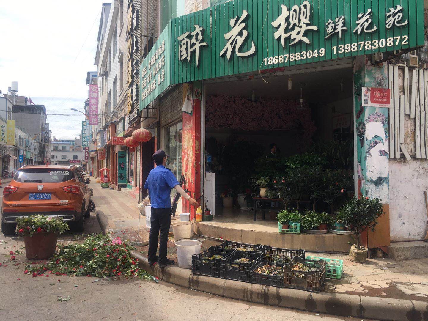 粮贸街醉花樱占道经营,堆放垃圾不及时清理