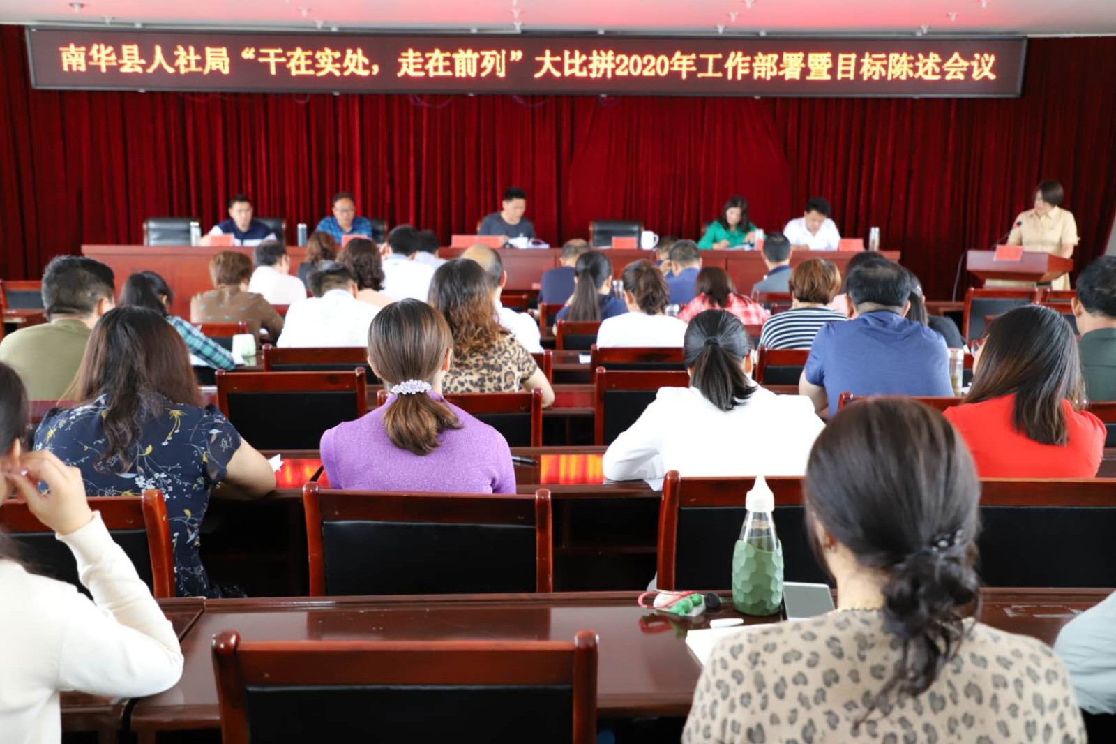 为进一步激发全局干部职工在争创一流上拉高标杆,在比学赶超中实现跨越,在创先争优上勇争先进的积极性和主动性,做到人人心中有动力、有目标,个个肩上有担子、有责任的工作目标。7月6日上午,南华县人社局组织开展“干在实处、走在前列”大比拼目标陈述。5名局班子成员、15个股(室)中心负责人及部分干部职工结合各自工作实际,对2020年度主责事项、比拼目标、标兵标杆及确定的主要理由、采取的主要措施等内容进行了陈述。