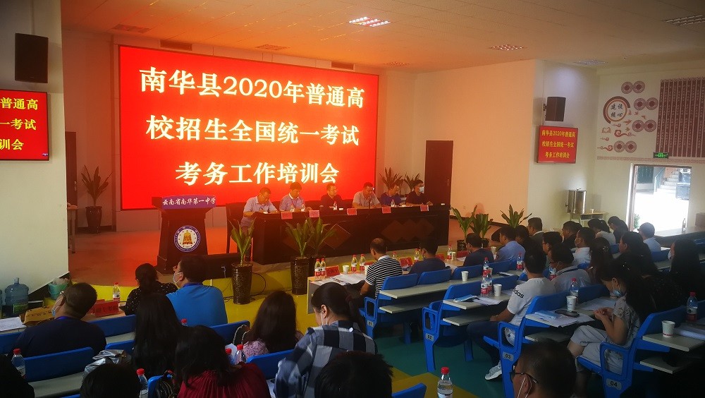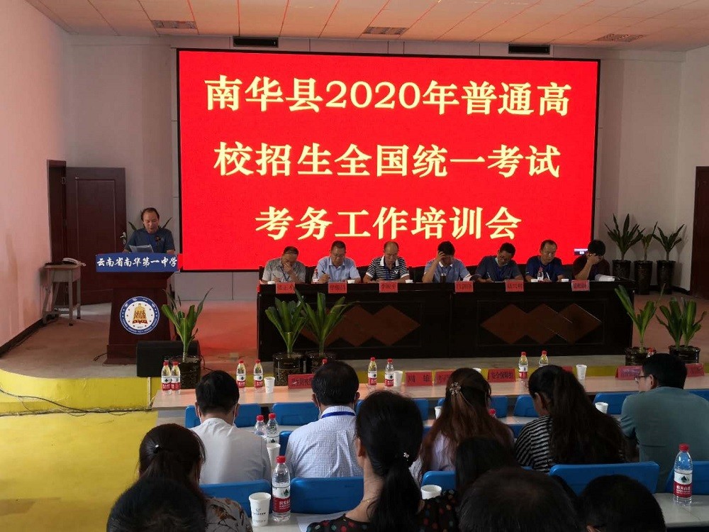 为进一步做实、做细2020年高考各项工作,实现健康高考、诚信高考、平安高考、温馨高考,7月6日上午,南华县2020年普通高校招生全国统一考试考务工作培训会在南华一中报告厅召开。县委常委、县人民政府常务副县长石文武、南华县2020年普通高校招生考试考区委员会11个工作组组长、考点主考、副主考、系统管理员和涉及考务工作的监考教师、考务工作人员等参加会议。