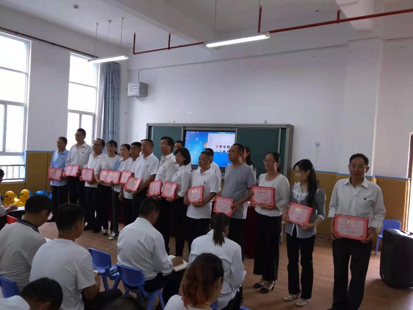 开展表彰先进活动。对 2019 年度基层党建工作述职评议考核为“优秀共产党员”的17名党员进行通报表扬,并颁发荣誉证书,发挥示范引领作用,增强党组织和共产党员的荣誉感和使命感,不断提高为民服务的意识和能力,并号召中心校全体教职工学习优秀党员的先进事迹,大力弘扬他们的崇高精神和优秀品质,教育和引导全体党员干部传承优良传统、弘扬先进精神,坚定政治方向,努力营造学先进、赶先进、创一流的良好氛围。