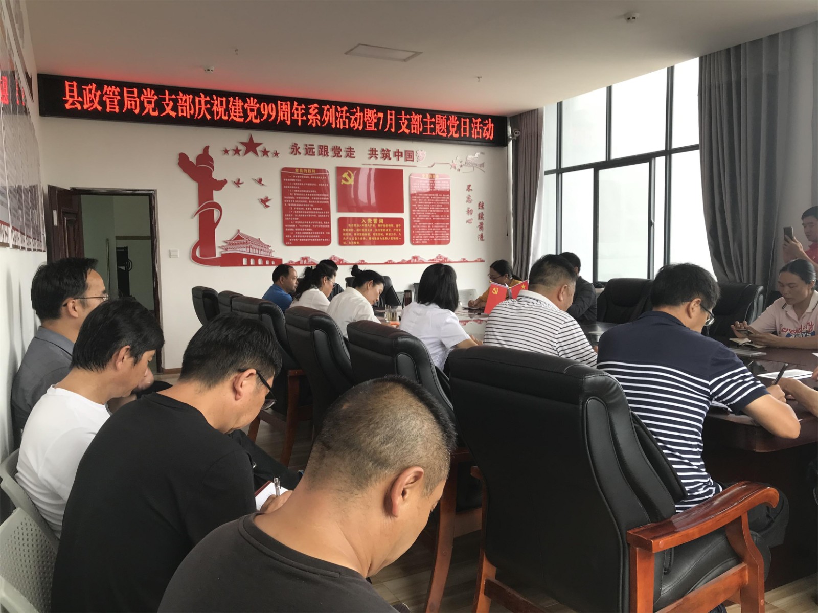 召开庆祝建党99周年大会,同唱国歌,重温入党誓词;为7月份入党的8名党员过政治生日,唤醒入党初心,增强党员归属感;局党组书记、局长刘黎华讲授专题党课,教育引导广大党员干部不忘初心,砥砺前行,强化工作使命感。