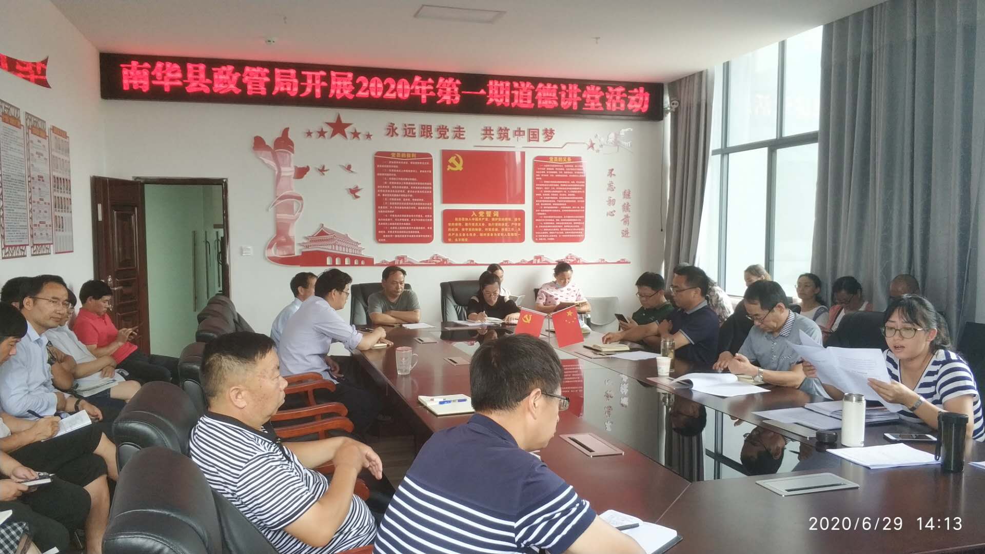 文明是城市之魂,道德是立身之本。为了创建州级文明城市,大力弘扬社会主义核心价值观,6月29日下午,南华县政管局开展了2020年第一期道德讲堂活动。