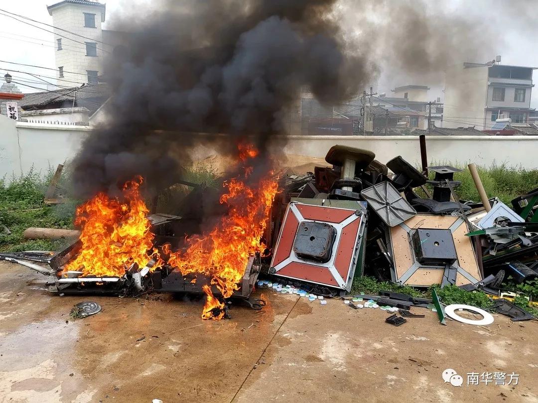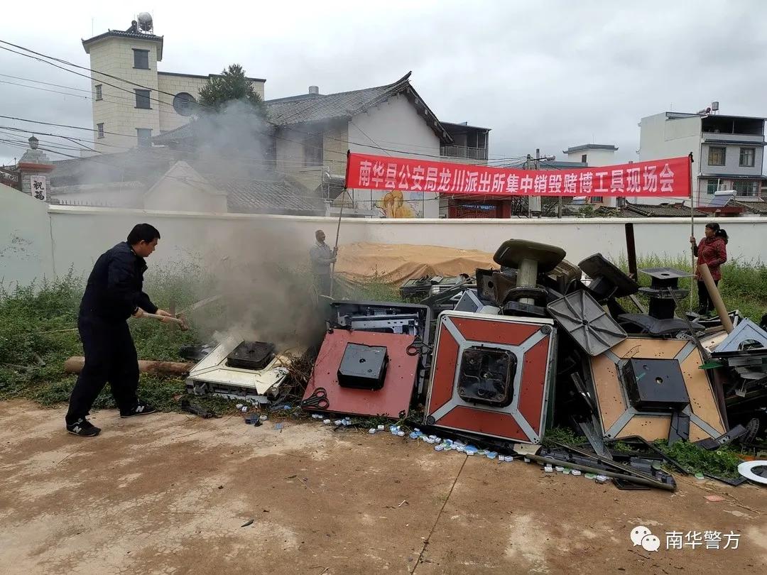 10月20日,南华县公安局举行集中销毁赌博工具现场会,对龙川派出所近期在工作中收缴的33台自动麻将机各66副麻将等赌博工具进行集中销毁。