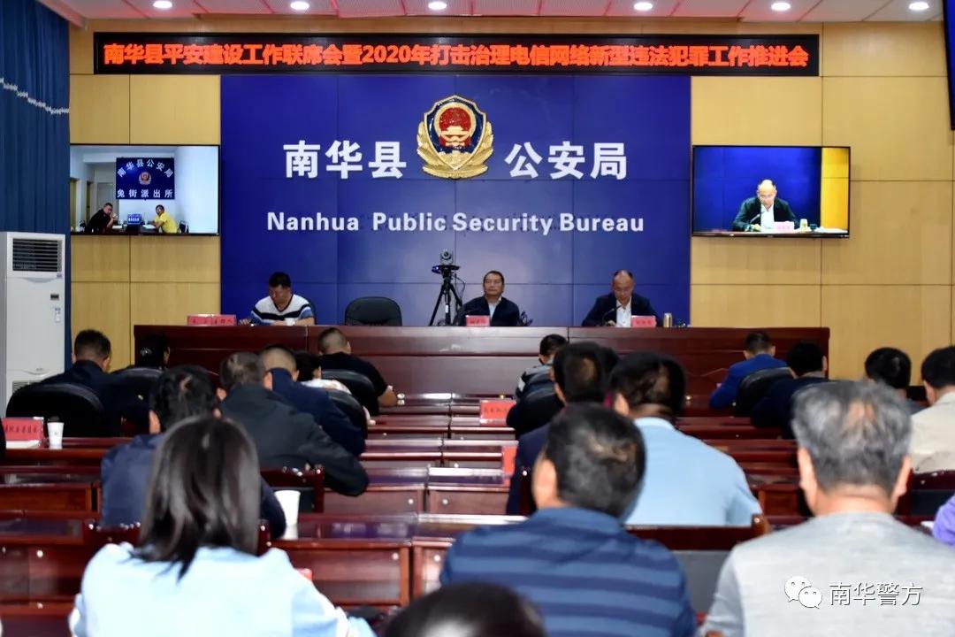 10月14日上午,南华县平安建设工作联席暨2020年打击治理电信网络新型违法犯罪工作推进会在县公安局五楼会议室召开。县委常委、县委政法委书记张志洪出席会议并讲话,县平安建设领导小组成员单位分管领导参加会议,会议以视频会议的形式开至各乡镇。县人民政府副县长、县公安局党委书记、局长张惊雷主持会议。