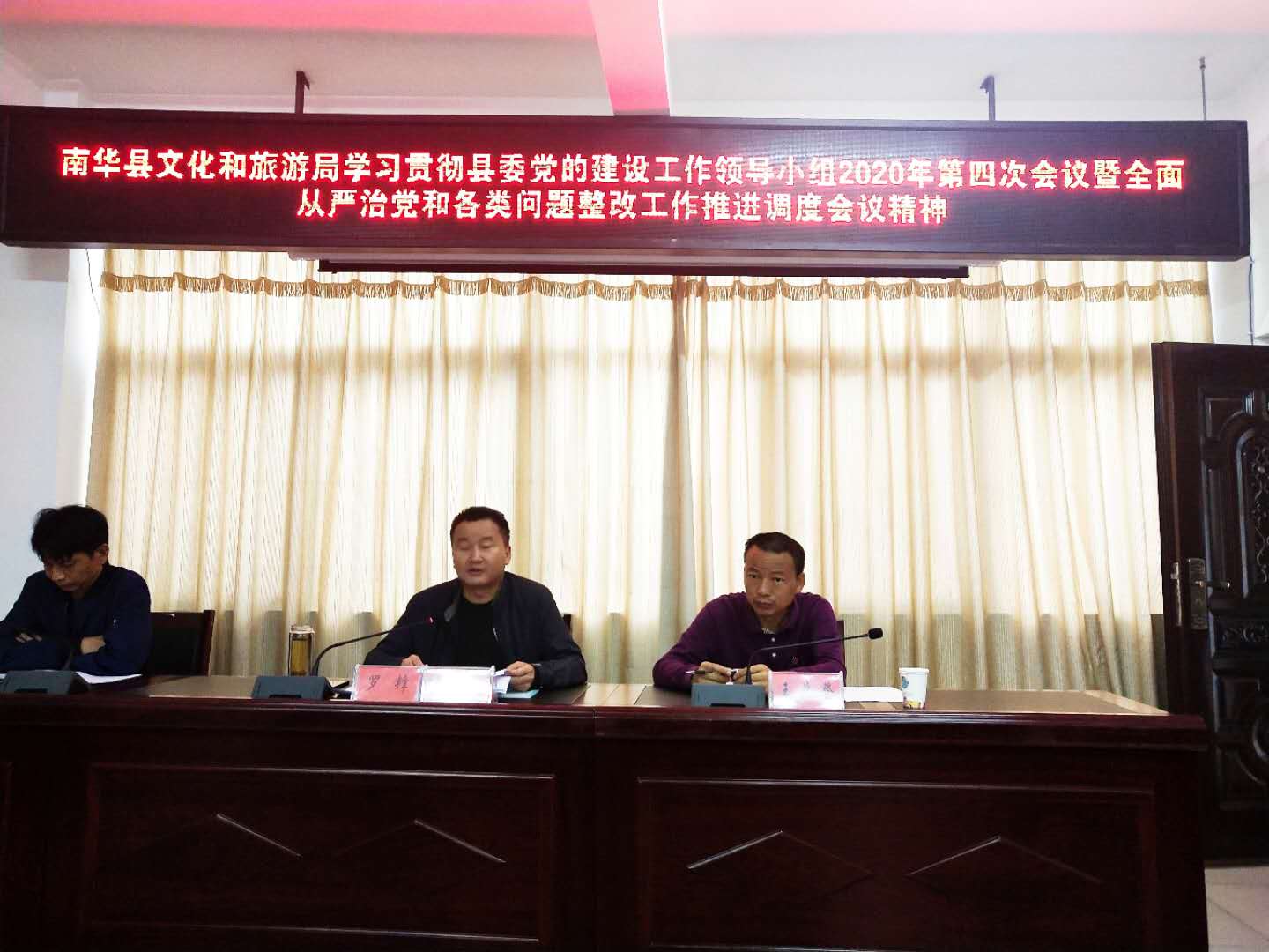 10月12日,南华县文化和旅游局召开干部大会,认真传达学习了中共南华县委党的建设工作领导小组2020年第四次会议暨全面从严治党和各类问题整改工作推进调度会议精神,对下步工作进行了部署安排。