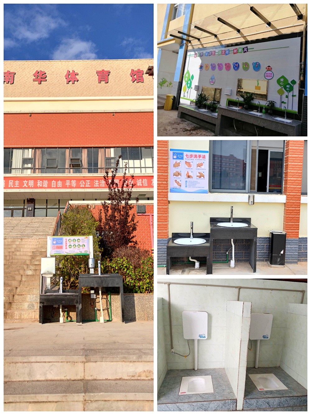 完善各项卫生设施。在公共活动区域、洗手间配置洗手台、洗手液、纸巾、香薰等物品,张贴7步洗手法示意图,引导教职员工、学生改变不良生活习惯,培养文明健康的生活方式,实现优美、干净、整洁的机关和校园环境。