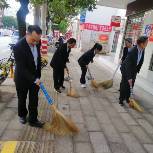 9月25日上午,为认真贯彻落实全县“爱国卫生大扫除”工作部署,推动“街长制”网格化包保管理责任区域环境卫生突出问题得到有效整治,人居环境明显改善。粮贸街网格区各责任单位及时行动,组织单位干部职工到各自网格责任区域开展环境卫生集中清扫。