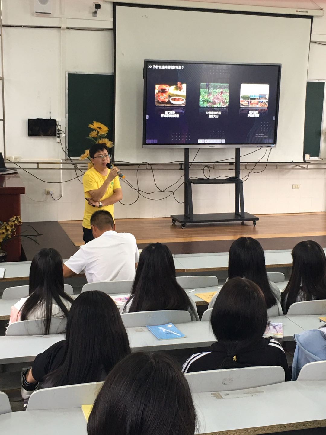 王朝选同志向同学们讲述了他做电商创业的初衷,创业的经历、收获和对未来的展望。通过电商创业,他不仅享受到互联网时代的福利、带动数十人干事创业,而且将南华的野生菌、水果玉米、红皮洋芋、小米辣等农产品远销到全国各地,带动了农民致富,成功入选彝乡电商创业人才,有效地宣传了家乡南华。