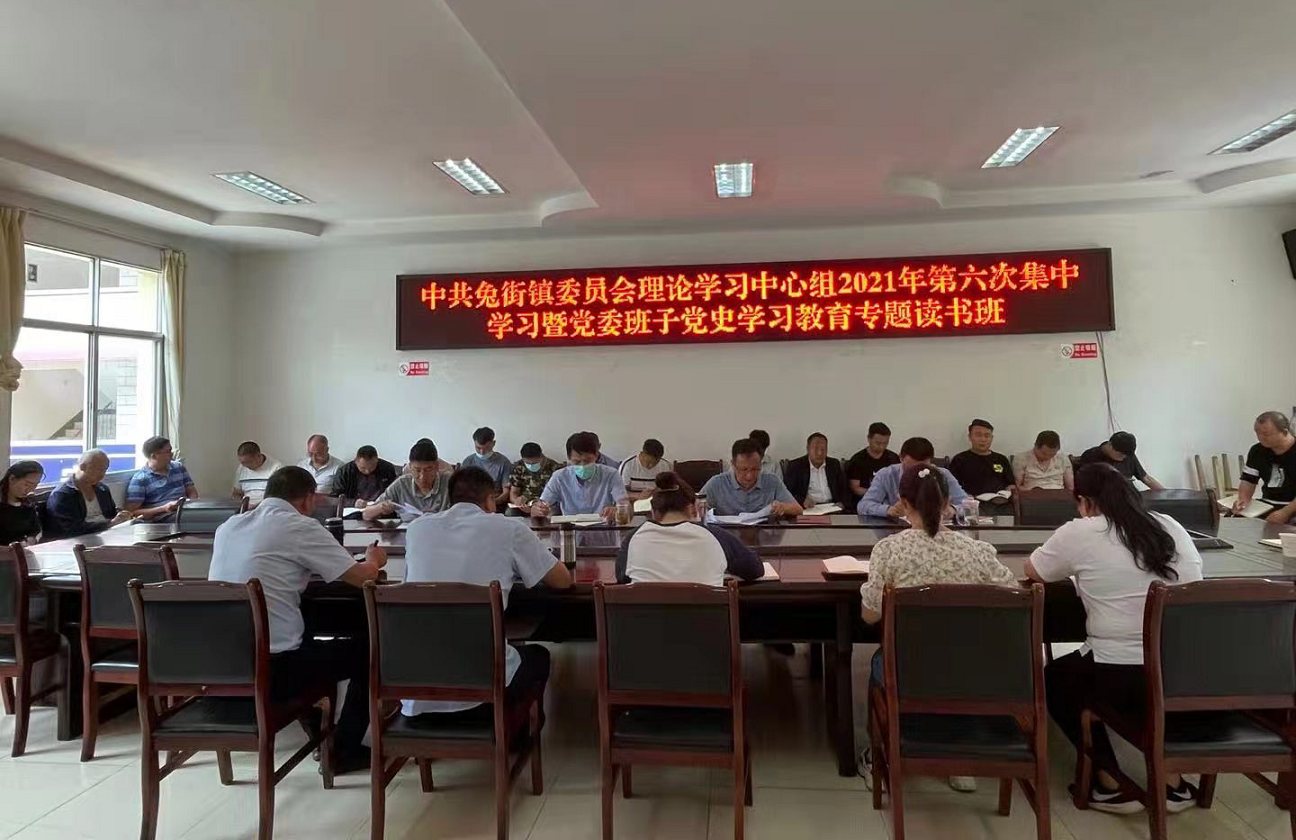 近日,兔街镇召开党委理论学习中心组2021年第六次集中学习暨党委班子党史学习教育专题读书班,镇副科级以上领导干部(含科级非领导职务),镇属单位负责人、各村党总支书记主任和各村驻村工作队长等50余人参加学习。