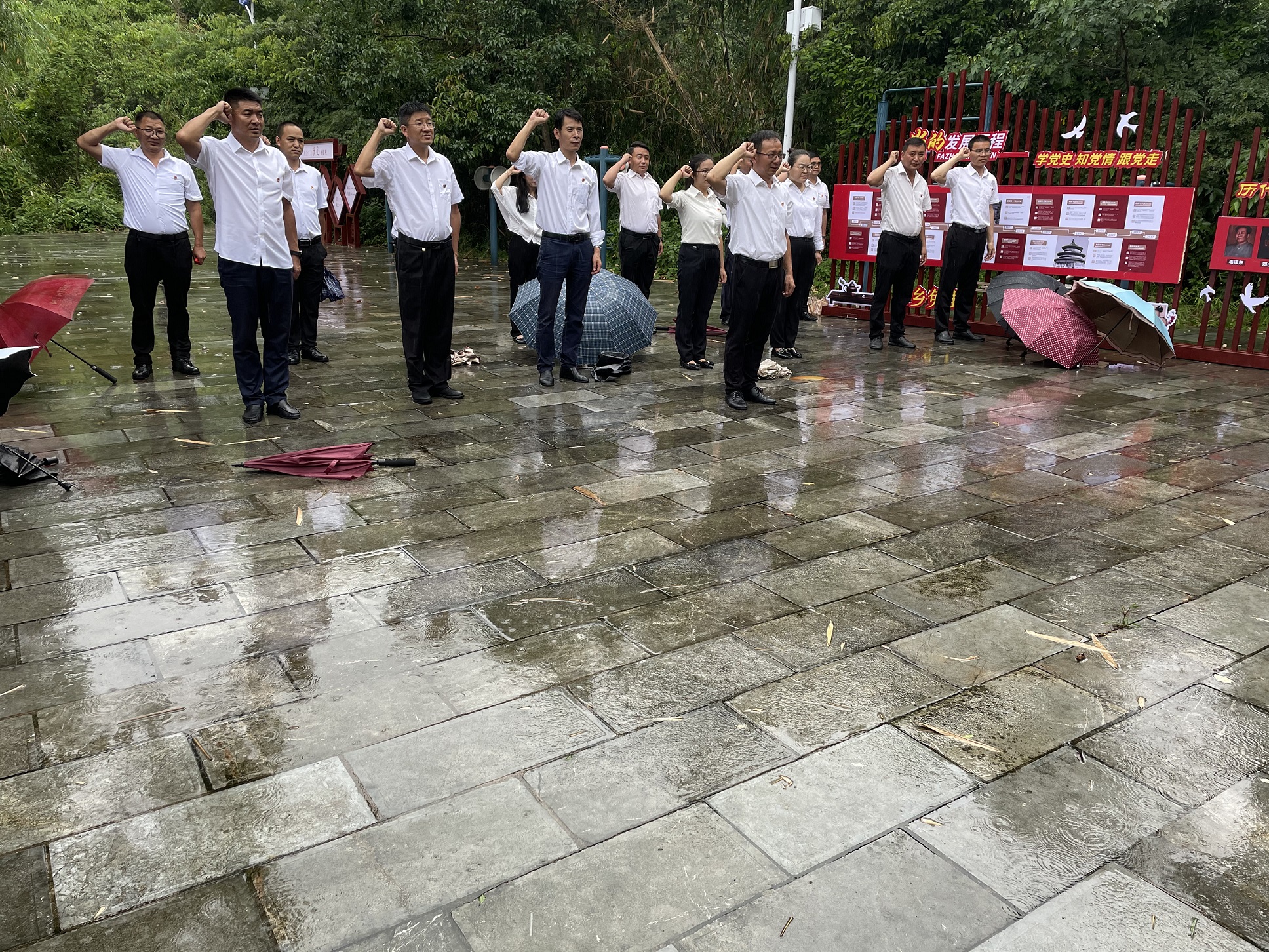 活动尾声,全体人员高举右手,庄严宣誓,重温入党誓词,鞭策激励大家回望来路,不忘初心,再启新程。