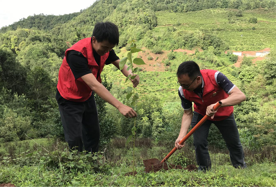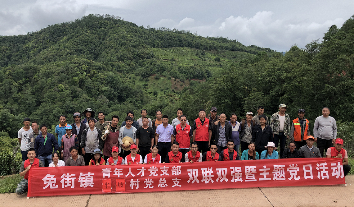 7月22日上午,兔街镇青年人才党支部党员在支部书记的带领下深入半坡村委会,与半坡村干部、群众共计45人一同开展绿化、美化植树活动。
