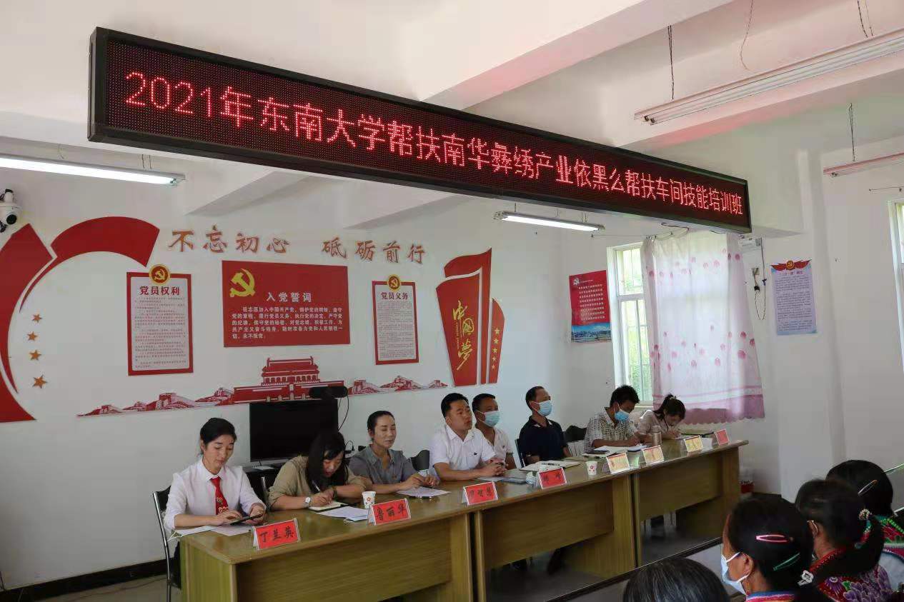 就业是民生之本、和谐之基。为进一步传承民族技艺,培养更多技术成熟的彝绣人才带领红土坡镇广大农村妇女巧手致富,实现由“体力型”就业向 “技能型”就业转变,为巩固拓展脱贫攻坚成果、全面推进乡村振兴贡献巾帼力量,在东南大学和上海国际机场的大力支持下,在县妇联的关心下,2021年东南大学和上海国际机场定点帮扶依黑么彝绣技能培训班于8月5日在依黑么村委会开班了,共有130名热爱刺绣并有一定基础的农村妇女参加培训。