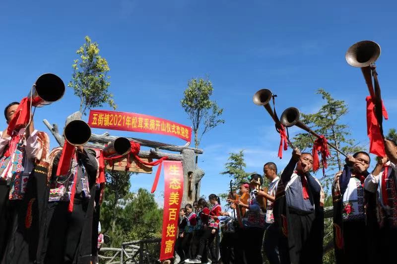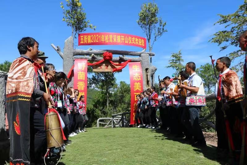 8月7日上午,五街镇在咪嘿们村百菌园举行松茸采摘开山仪式,以此感恩大自然给予菌农的馈赠,也标志着全县进入野生菌采摘期。