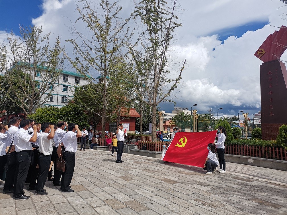 参加活动的全体人员,统一着装,精神抖擞地来到解放战争时期南华革命老区纪念碑前,面朝鲜红的党旗,庄重地举起右手,在镇党委书记马学富的带领下,再次重温入党誓词,铿锵有力的入党誓词震撼着每一位党员的心灵,更加坚定了身为党员的使命与担当。