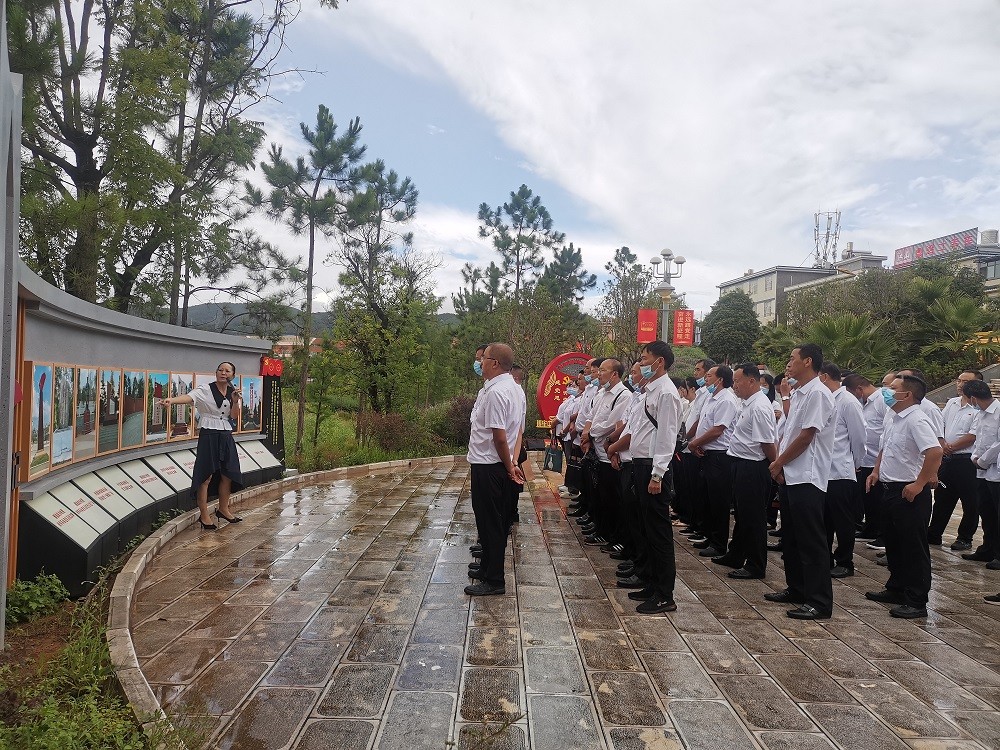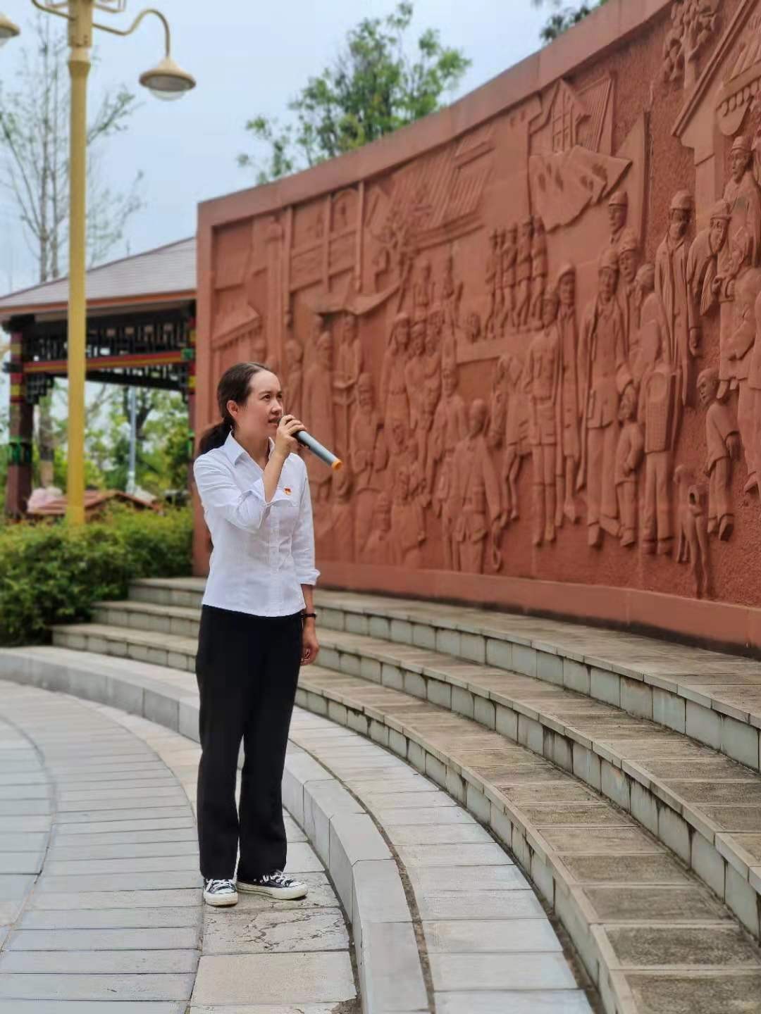在革命老区浮雕纪念墙前,镇宣传委员为全体人员讲解了南华县的革命历史,带领大家走进红色的历史记忆,追忆老一辈革命家在南华这片热土上留下的红色故事,并在镇党委副书记的带领下,高唱《没有共产党就没有新中国》。