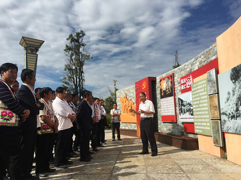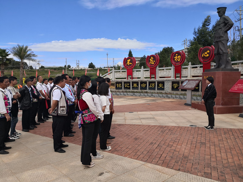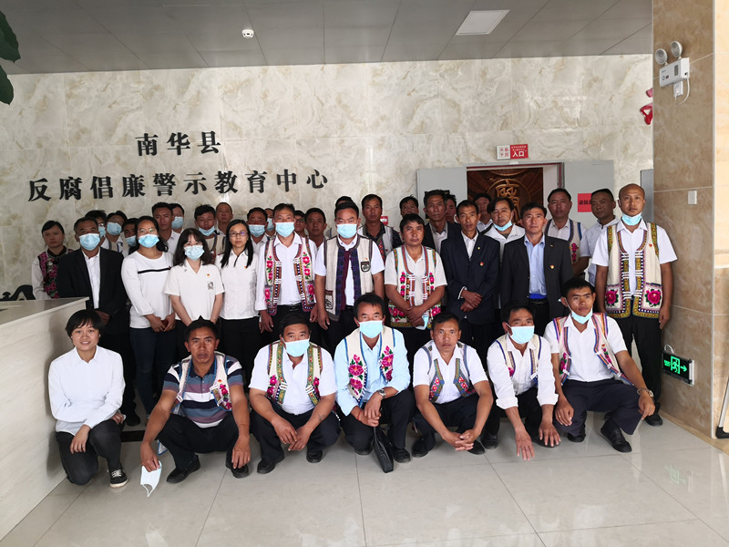 咪黑们村、中村村“两委班子”成员,各党小组长、村组组长以及中村、咪黑们村驻村工作队全体队员首先在南华县红色文化主题公园参观学习,南华县委党史研究室主任周以惠为全体参观学习的党员讲解了南华地方党史,详细介绍了红军长征过南华、南山区武装革命斗争等,重点介绍了南华籍最早的共产党员张舫烈士。参观完毕后,全体参观学习的党员重温了入党誓词。随后,全体党员到南华县反腐倡廉警示教育中心接受警示教育,观看警示展板和警示片。