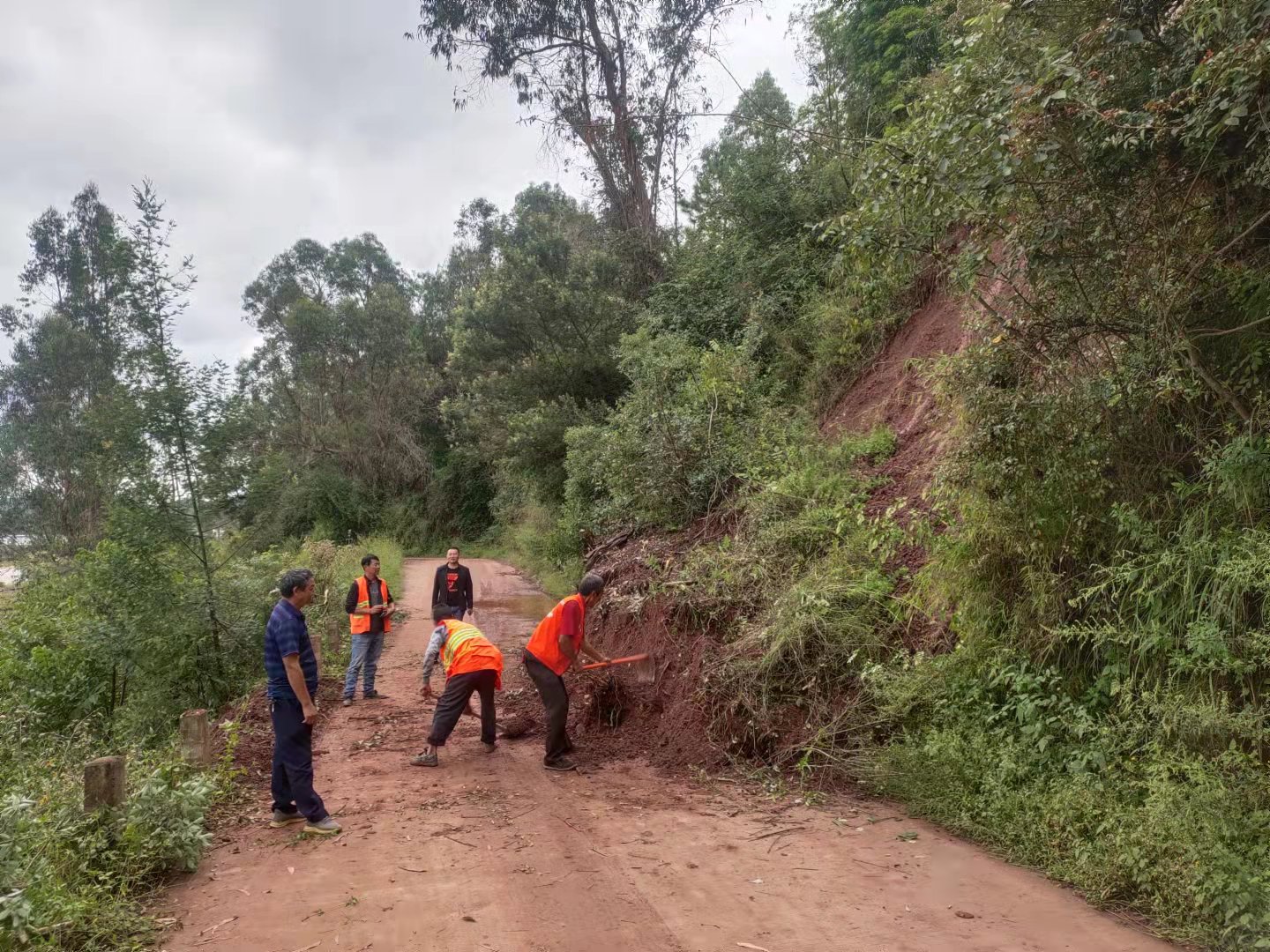 组织镇经济发展办及相关人员立即到现场查看道路受损情况。经检查,发现姚金线800米处有塌方,毛新线高家村段有多处塌方,若不及时处理任由雨水冲刷,可能造成道路中断,威胁群众出行及安全。