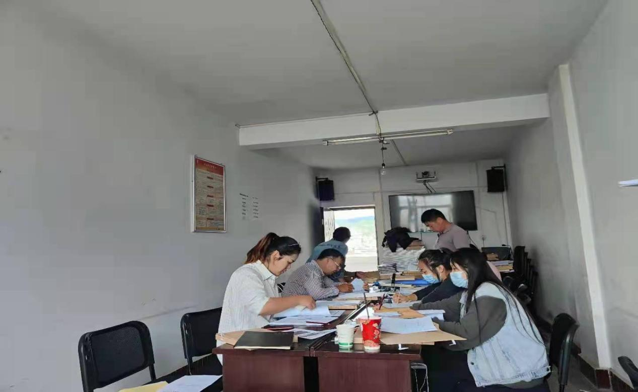 (镇脱贫攻坚档案工作专班小组认真审核归档档案)