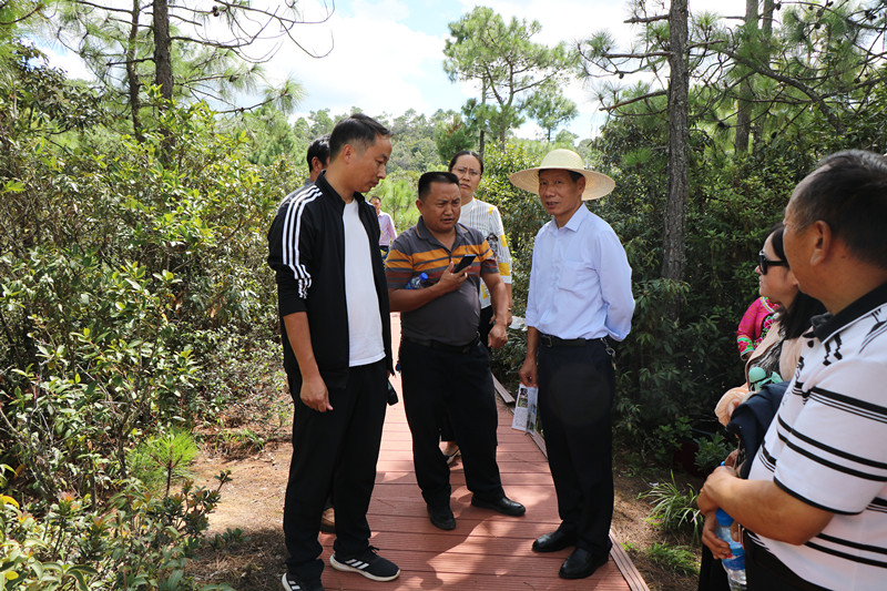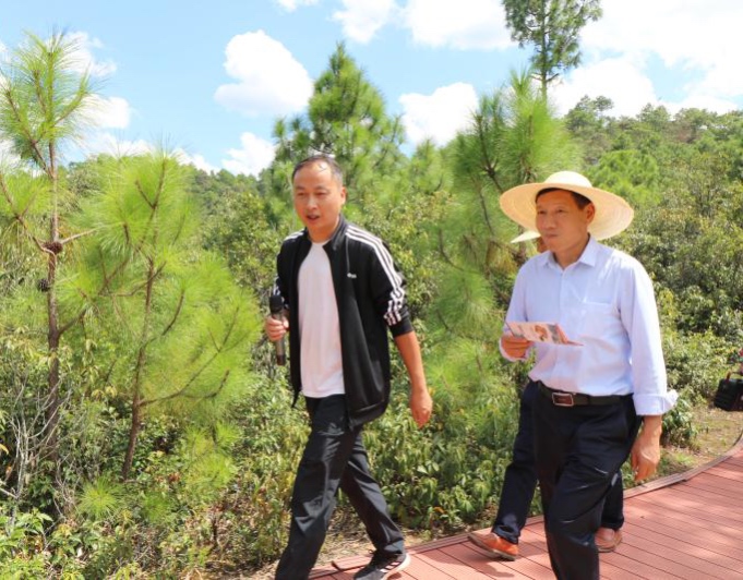 考察组一行先后深入五街镇咪黑们村“百菌园”保育促繁基地、咪黑们红色文化展览室、芹菜塘村旧五街松茸保育促繁基地等实地考察野生菌保育促繁工作。五街镇党委书记董学瑞向考察组一行详细介绍了五街镇野生菌产业发展情况及保育促繁的主要经验和做法。