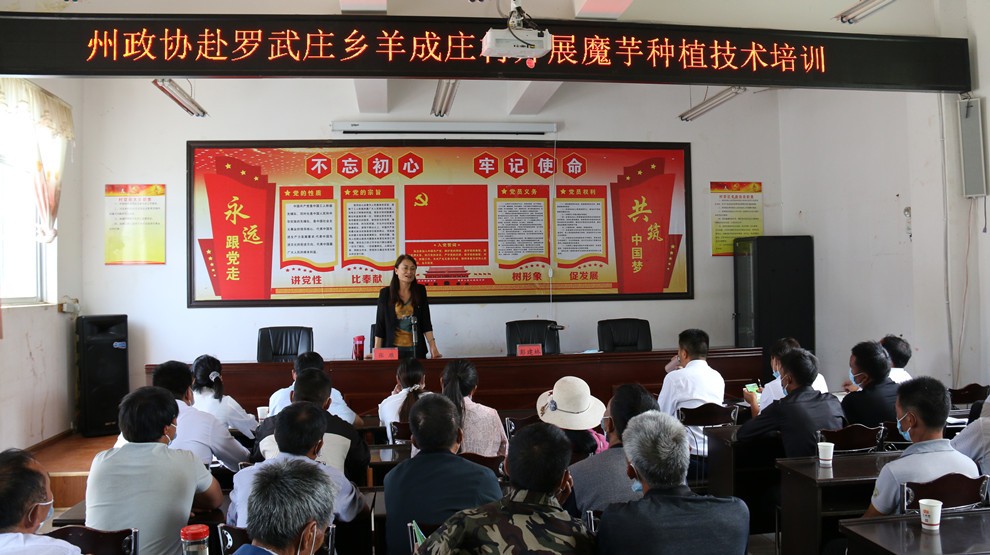 州农业农村局农科院经作所研究员张雁从“光、温、水、肥”四个方面进行了魔芋种植技术培训,为推动全乡魔芋产业健康发展,提高农户魔芋种植管理水平,增强农户的发展信心,实现魔芋丰产丰收、农业增效、农民增收,提供了技术支持。
